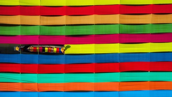 Màu sắc của vải Inle, ở vị trí thứ 4, hạng mục Mở với chủ đề Môi trường/ Kiến trúc Xây dựng. Ảnh chụp ở hồ Inle, Myanmar