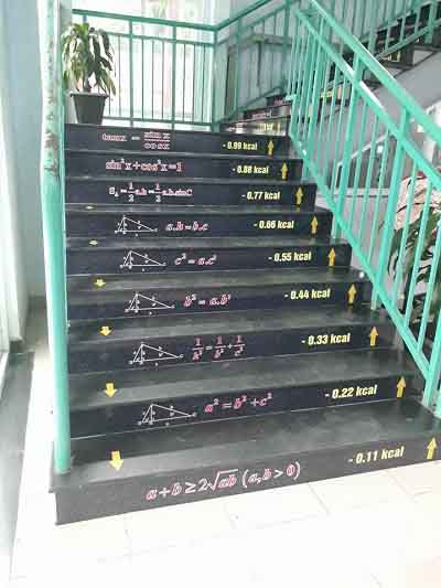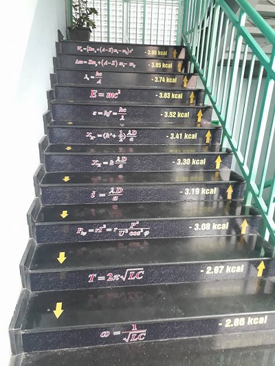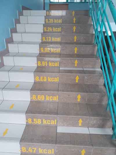 những bậc cầu thang thú vị hơn khi được đánh số kcal (calo) giảm dần tương ứng theo độ cao