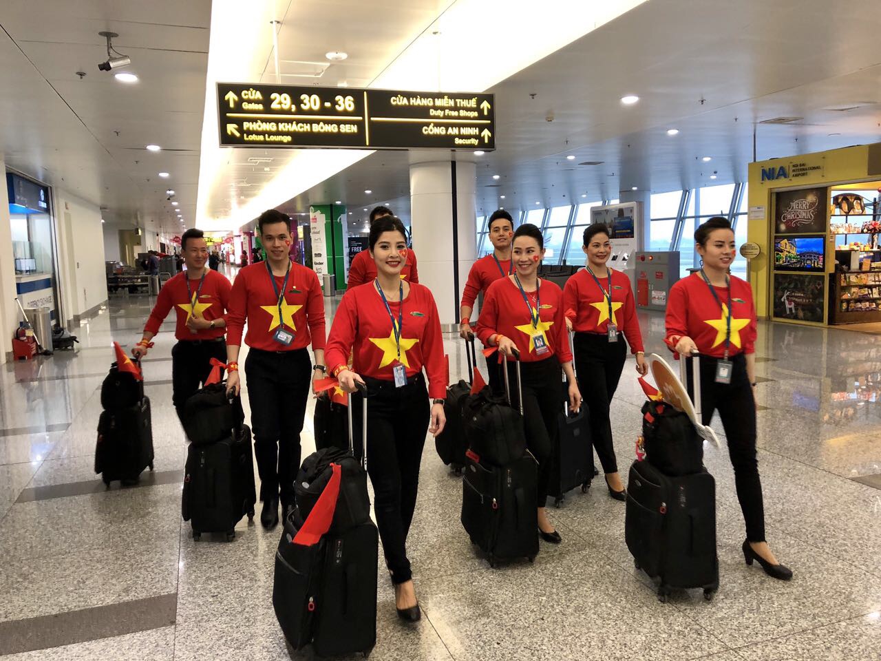 Các cổ động viên (CĐV) Việt Nam đã có mặt tại sân bay Nội Bài, Đà Nẵng, Tân Sơn Nhất sáng nay, 11-12, để làm thủ tục lên 6 chuyến bay của Vietnam Airlines sang Malaysia cổ vũ cho đội tuyển Việt Nam tại trận chung kết lượt đi AFF Cup 2018 trên sân Bukit Jalil, Kuala Lumpur. Các chuyến bay này được khai thác bằng máy bay Airbus A350-900 và A321 với chất lượng dịch vụ quốc tế 4 sao.
