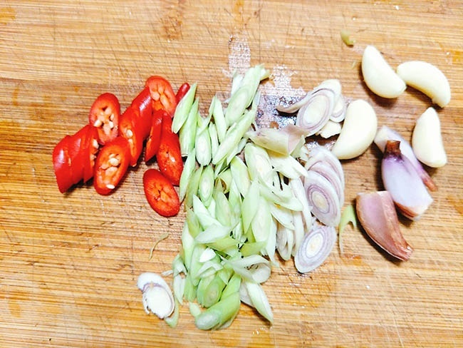 – 1 củ tỏi, 1 củ hành khô, 1 cây sả, 1 quả ớt sừng