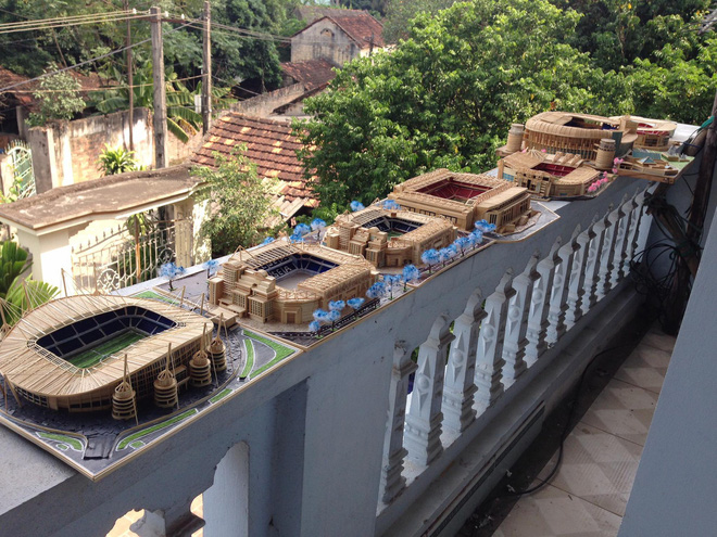 Chàng trai làm hàng trăm mô hình sân vận động nổi tiếng từ tăm tre