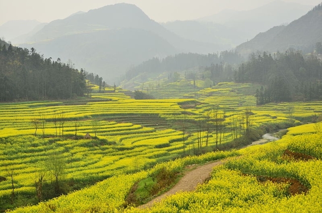 La Bình là một huyện nhỏ nằm ở phía đông tỉnh Vân Nam, Trung Quốc. Vào mùa xuân, khi những bông hoa cải nở rộ, cả khu vực như biến thành một “biển vàng” rực rỡ, thu hút không ít khách du lịch và các nhiếp ảnh gia ghé thăm. Thời điểm tốt nhất để đến La Bình ngắm hoa cải là từ tháng 2 đến tháng 3. Ảnh: Popsugar.