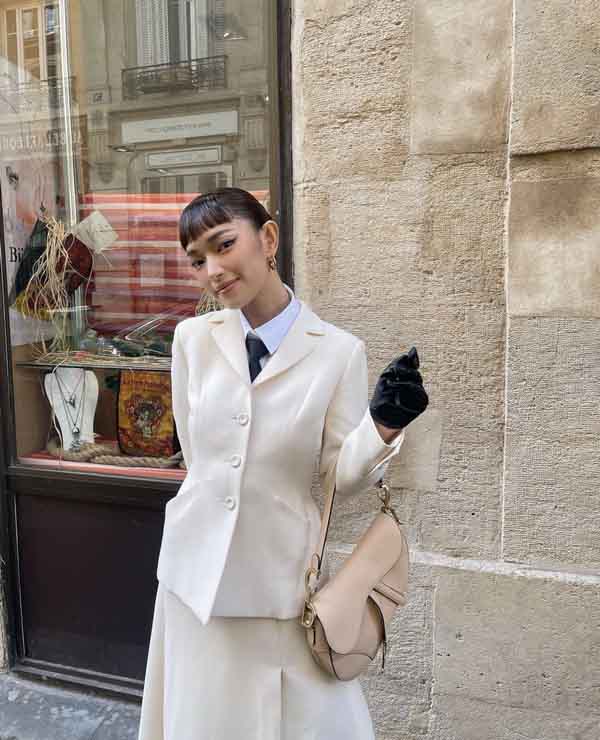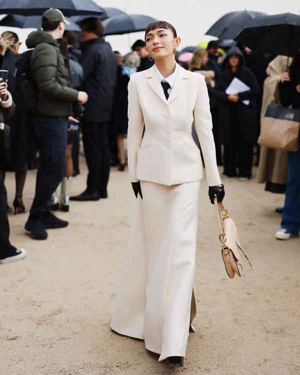 Châu Bùi diện chiếc áo huyền thoại “The Bar Jacket” với bề dày lịch sử 75 năm, thiết kế này luôn được nhắc tên liên tục trên các tạp chí hàng đầu thế giới và luôn ghi dấu ấn với các biên tập nổi tiếng như Harper’s Bazaar Mỹ.
