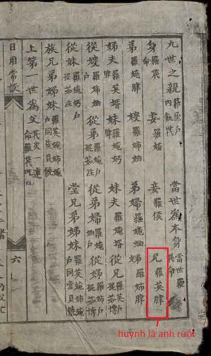 Huynh là anh ruột (trích Nhật dụng thường đàm của Phạm Đình Hổ)
