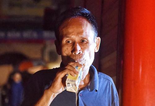 Khách trọ của ông Hiệp đến tá túc tạm trong nhà văn hoá khối 5, phường Ngọc Khánh.