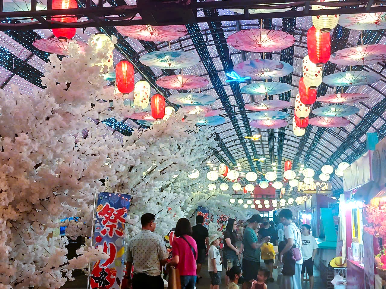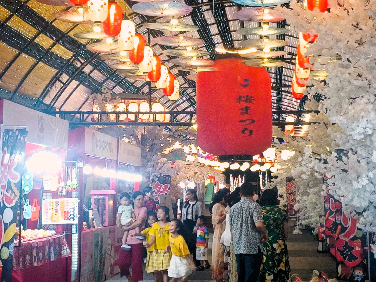 Một trong những khu vực đông người nhất là khu ẩm thực và các gian hàng bán đặc sản Nhật Bản. Tại đây, khách tham quan có thể dễ dàng tìm thấy những món ăn quen thuộc như takoyaki, sushi hay bánh mochi. Trải nghiệm vừa dạo bước dưới “mùa hoa anh đào”, vừa thưởng thức ẩm thực đặc trưng mang lại cảm giác khá thú vị. Tuy nhiên, vào giờ cao điểm, việc xếp hàng chờ mua là điều khó tránh khỏi.
