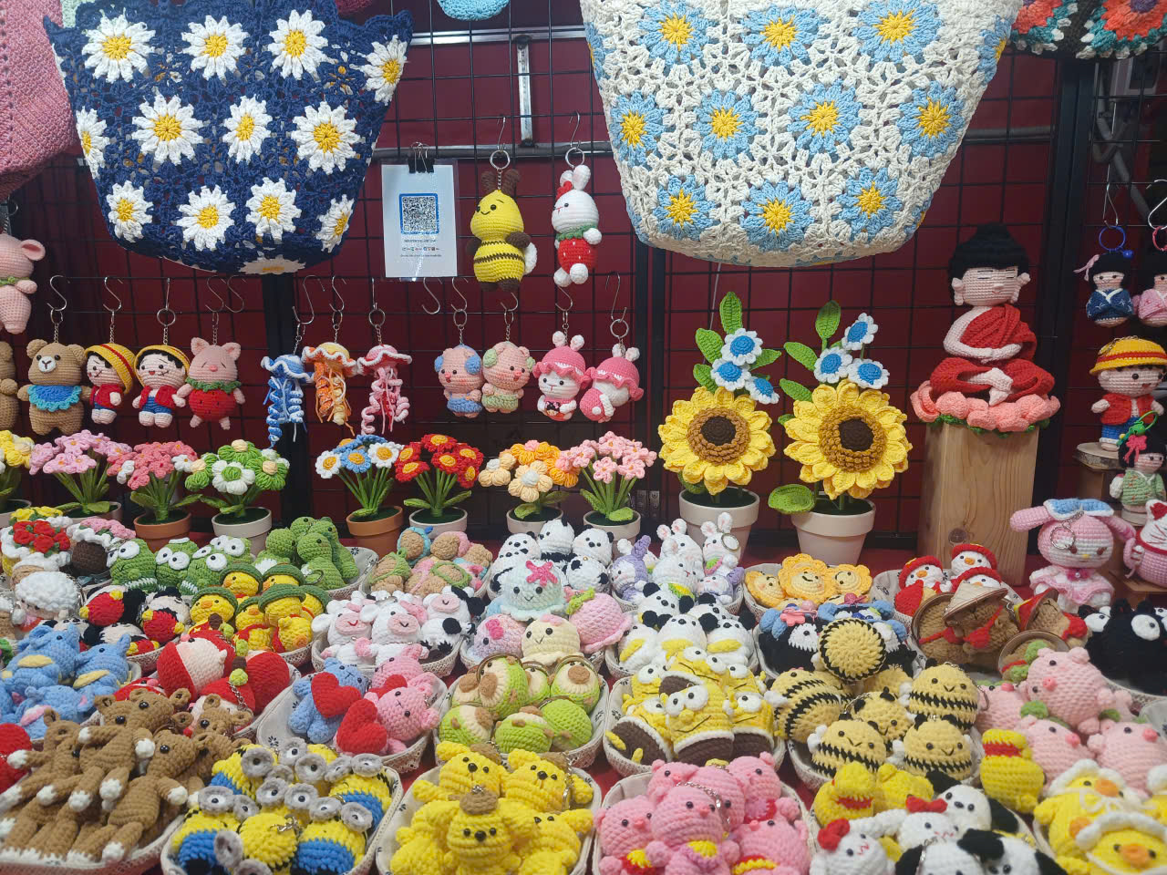Các sản phẩm móc len tạo hình Doraemon và cô gái Nhật Bản cũng được trưng bày tại lễ hội – Nguồn: MXH Duyên Dáng Việt Nam