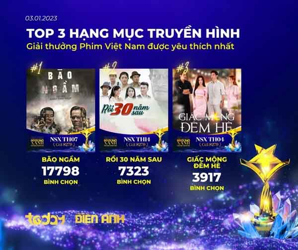 Cùng cập nhật nhanh top 3 của các hạng mục giải thưởng do khán giả bình chọn, tính đến 11h00 ngày 03/01/2023: