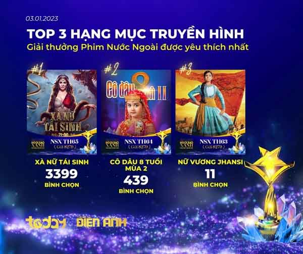Cùng với đó phim truyền hình Ấn Độ – “Xà nữ tái sinh” cũng có cơ hội trở thành Phim nước ngoài được yêu thích nhất với 3.399 vote.