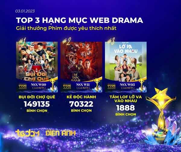 Ngoài ra giải “Phim Web Drama được yêu thích nhất” (do khán giả bình chọn) cũng đang gọi tên “Bụi đời chợ quê”.