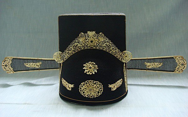 Văn ban, trên nhất phẩm, mũ áo đại triều: Đại triều, dùng mũ phốc tròn, ở trên có cầu vàng, gia thêm 2 cái hất vàng, đều cao 6 phân, ở dưới ngạch thân mũ bằng vàng, phía trước phía sau đều 1 hoa bằng vàng, 2 cánh ở bên bọc vàng, mặt trang sức con giao long bằng vàng chuỗi ngọc châu. Về hoa và giao long, từ nhất phẩm đến ngũ phẩm đều nên dùng mảnh vàng để chạm, không được làm nổi dậy rung động được.