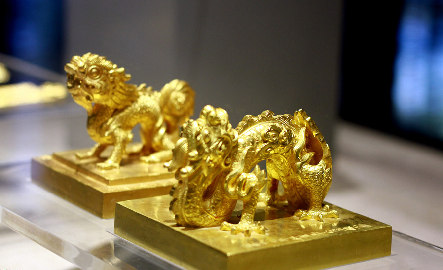 Trong đó, các bảo vật này được chia thành 4 nhóm, gồm hiện vật biểu trưng quyền lực với các kim ấn, ngọc tỉ, bảo kiếm, kim sách; đồ thờ tự và nghi lễ như đài thờ, đỉnh trầm, chân đèn; văn phòng tứ bảo, gồm: nghiên mực, quản bút, hộp son; đồ sinh hoạt là bát, đĩa, đồ uống trà.