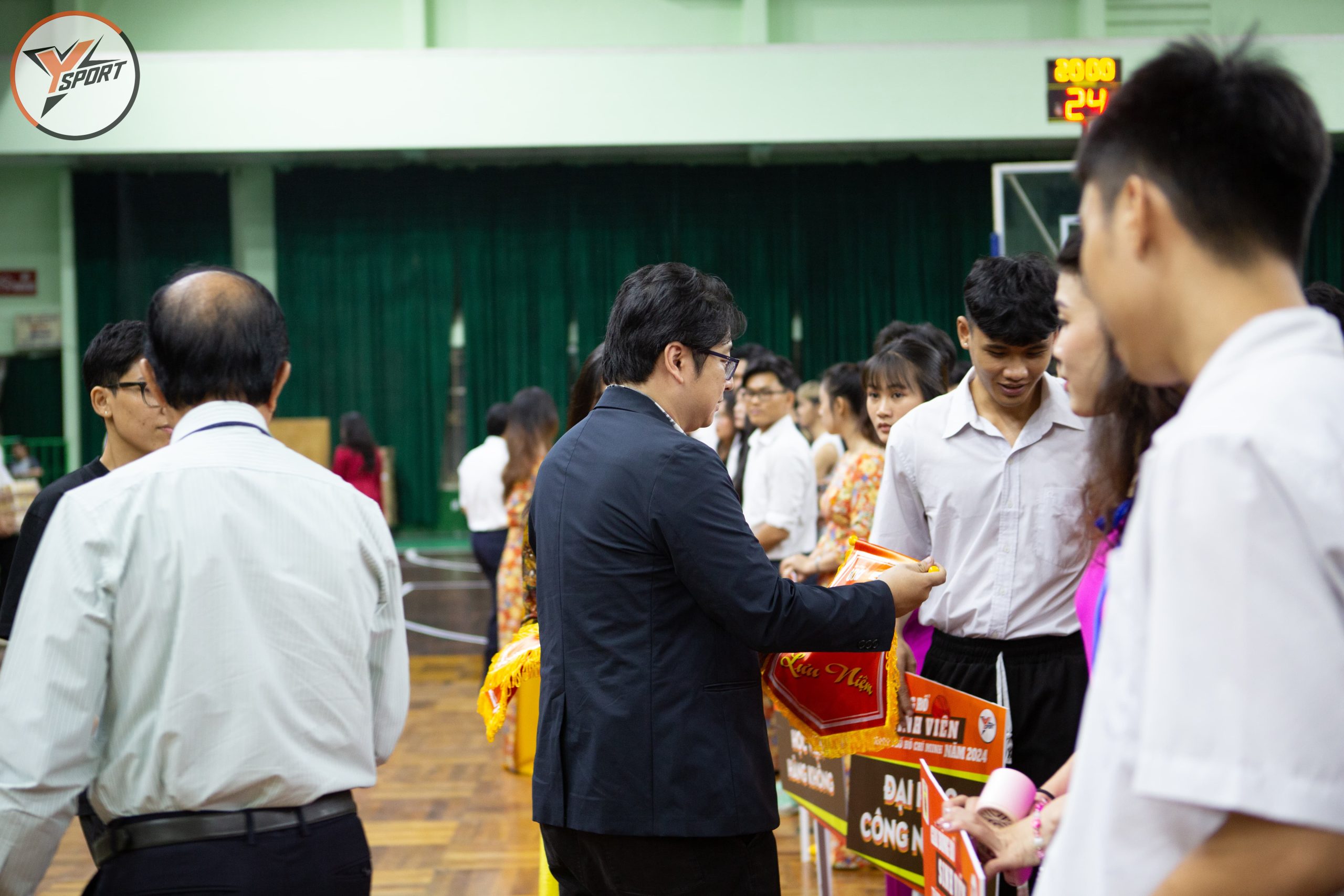 Ông Nguyễn Sơn Trà – Giám đốc công ty Công ty TNHH Sáng tạo và Phát triển Thanh Niên trao cờ lưu niệm và quà cho đại diện các trường tham gia – Ảnh: Thể thao Ysport