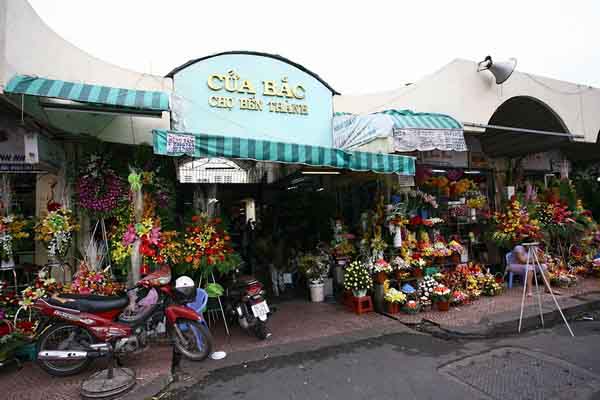 Cửa bắc ở đường Lê Thánh Tôn, nơi có các quầy hàng được phép quay ra phố có nhiều hàng hoa…