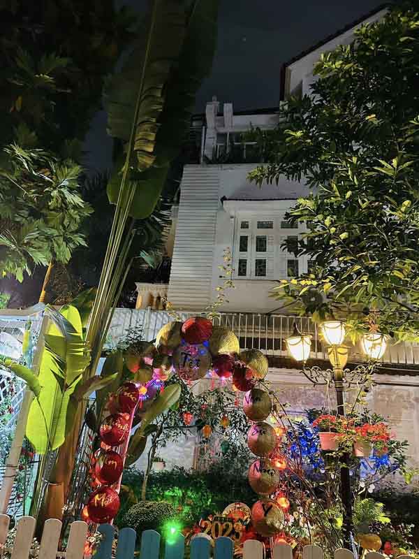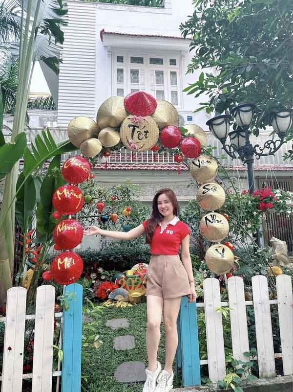 Ở khu vườn trước nhà, Vy Oanh còn dành thời gian để trang bị cổng chào với chữ “Tết” – mang đậm hương vị của Tết cổ truyền Việt Nam.