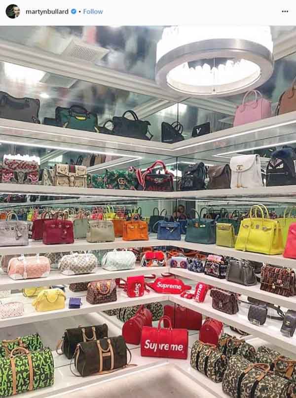 Nhà thiết kế nội thất của Kylie Jenner là Martyn Lawrence Bullard từng thốt lên khi nhìn thấy bộ sưu tập túi xách của Kylie vào năm 2017: “Tất cả các cô gái đều mơ ước và một số chàng trai cũng vậy! Hãy xem một góc phòng đựng đồ của cô ấy”. Martyn sau đó tiết lộ rằng anh đã sử dụng kệ nổi, tường lắp gương và đèn chùm pha lê giúp căn phòng lung linh hơn.