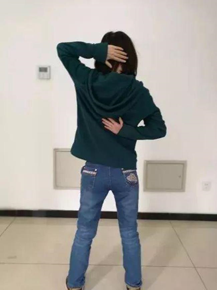 Bước 4: Tay trái đưa lên và đặt ở não sau, tay phải đưa xuống dưới khu vực xương bả vai. Mở phần đầu khuỷu tay trái. Sau đó để phần khuỷu tay trái và cánh tay song song với cơ thể.