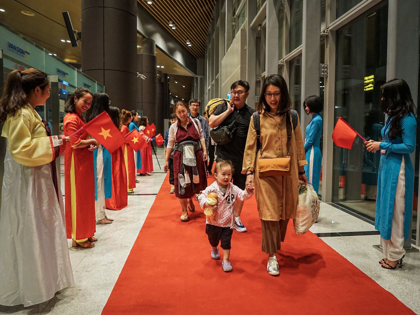 Các hành khách trên Chuyến bay quốc tế đầu tiên của hàng không Việt Nam đến Vân Đồn