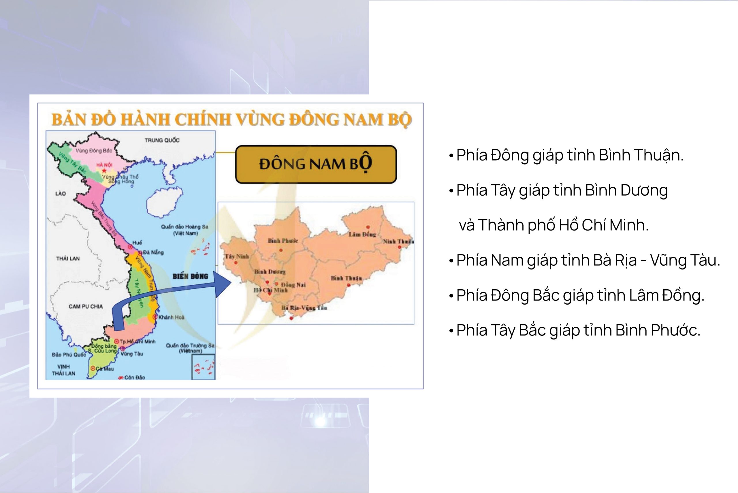 Vùng Đông Nam Bộ hiện đang là vùng kinh tế năng động bậc nhất nước ta hiện nay, cũng như Đồng Nai là tỉnh cửa ngõ => Từ Đồng Nai, ta có thể di chuyển được đến hầu hết các tỉnh thuộc vùng Đông Nam bộ (trừ Tây Ninh và Ninh Thuận).