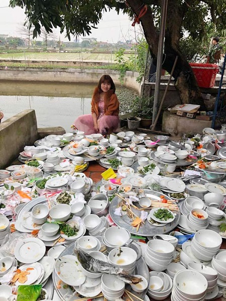 Chị Tâm Đan cho hay, hình ảnh mới đây được chụp trong dịp khao làng trước đám cưới của cháu chồng và chị thực sự phải rửa đống bát đũa đó, gần như một mình: “Ở quê thường có lịch cấy lúa vào đúng dịp ra Tết nên ăn xong ai về việc nấy, chỉ có mình xử lý đống bát đũa và lát sau có cô cháu gái ra tráng cùng”.