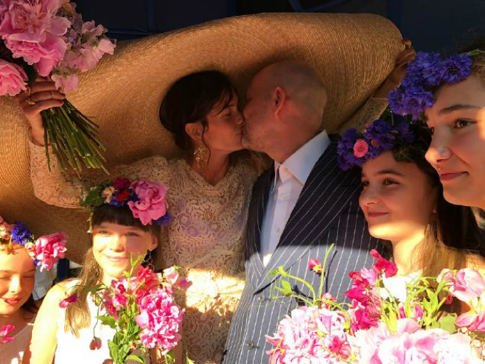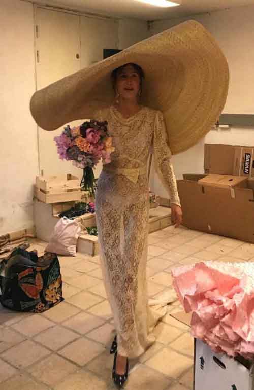 Trong hôn lễ với nghệ sĩ Beau Tal Rosenzweig ở Paris, nữ diễn viên kiêm người mẫu Đan Mạch Emma Leth đã gây choáng ngợp với khách mời bằng chiếc mũ che nắng khổng lồ thay thế voan cưới truyền thống.