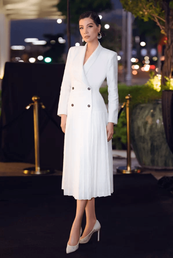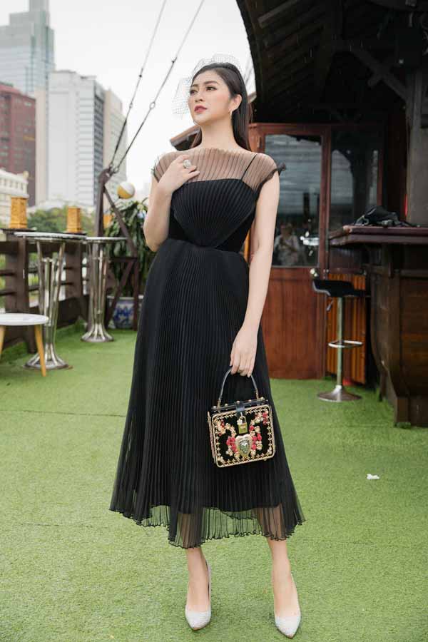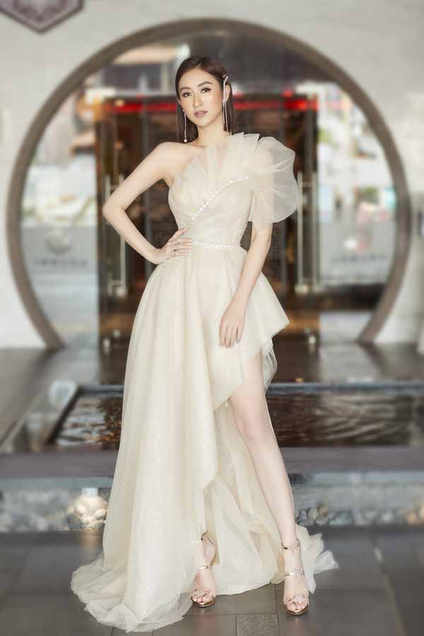 Á hậu Việt Nam Tú Anh gây thiện cảm trong bộ đầm ánh kim cắt xẻ tinh tế của NTK Đức Vincie. Cô liên tục lọt top sao mặc ấn tượng trong tuần nhờ gu thẩm mỹ cao tay. Người đẹp từ Hà Nội vào thành phố Hồ Chí Minh làm việc cùng đàn anh tài năng.