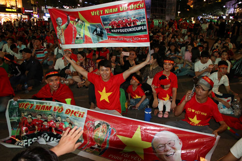 Rất đông các khán giả háo hức đến các tụ điểm rất sớm để xem trận bán kết lượt về AFF Cup giữa Việt Nam gặp Philippines. Họ tưng bừng ăn mừng chiến thắng sau 1 trận đấu có quá nhiều cảm xúc đến vậy.