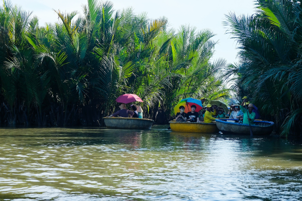 Không chỉ có những dãy phố mang màu vàng của nắng hay các tòa kiến trúc rêu phong cổ kính được xây từ thế kỷ 16, Hội An còn khiến du khách ngỡ ngàng bằng vẻ đẹp mênh mang sông nước với rừng dừa nước xanh um trông giống hệt khung cảnh miền Tây sông nước.