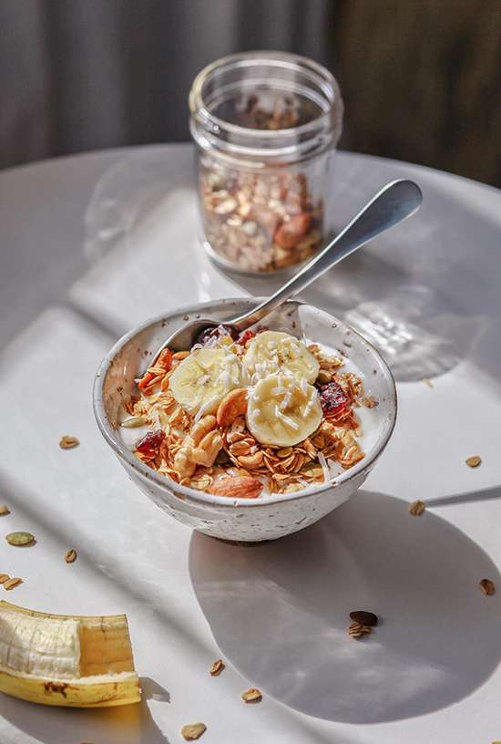 Cô nàng 9x còn thay thế sữa chua thông thường bằng sữa chua Hy Lạp chứa hàm lượng protein, dinh dưỡng cao hơn, như công thức sau: sữa chua Hy Lạp, granola, chuối, cơm dừa sấy khô.