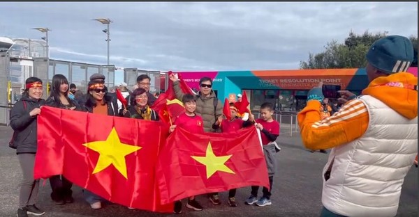 Cổ vũ đội tuyển nữ Việt Nam tại New Zealand: Rưng rưng nghe Quốc ca Việt Nam