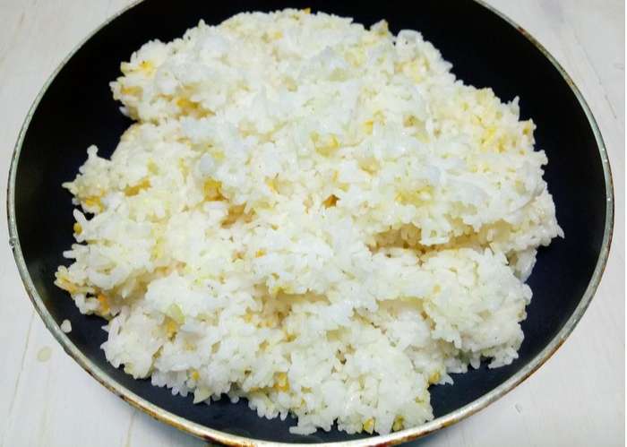 – Trong quá trình chiên cơm ta phải đảo đều để hạt cơm tơi ra và đều hạt với các nguyên liệu.