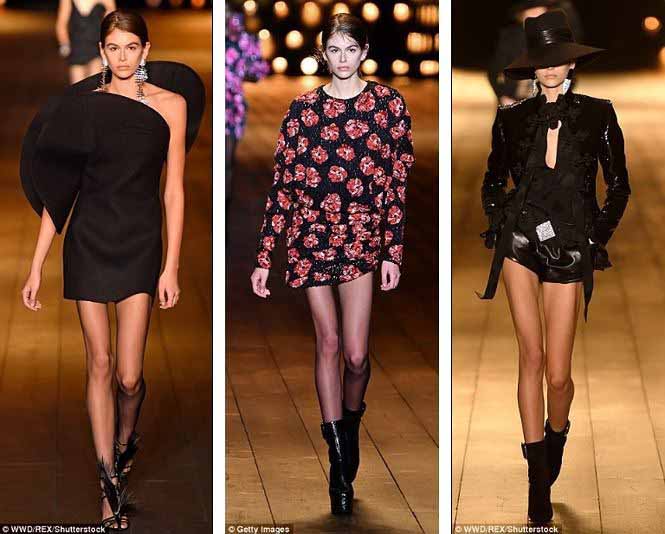 Kaia catwalk chuyên nghiệp trong show của Yves Saint Laurent