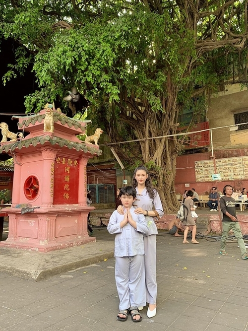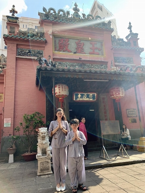 Trương Quỳnh Anh chia sẻ hình ảnh cùng con trai đi viếng chùa