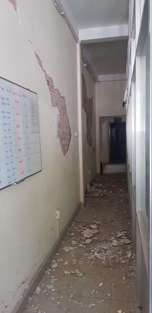 Hiện trường bên trong trụ sở Công an phường 12 cho thấy lực nổ khá mạnh