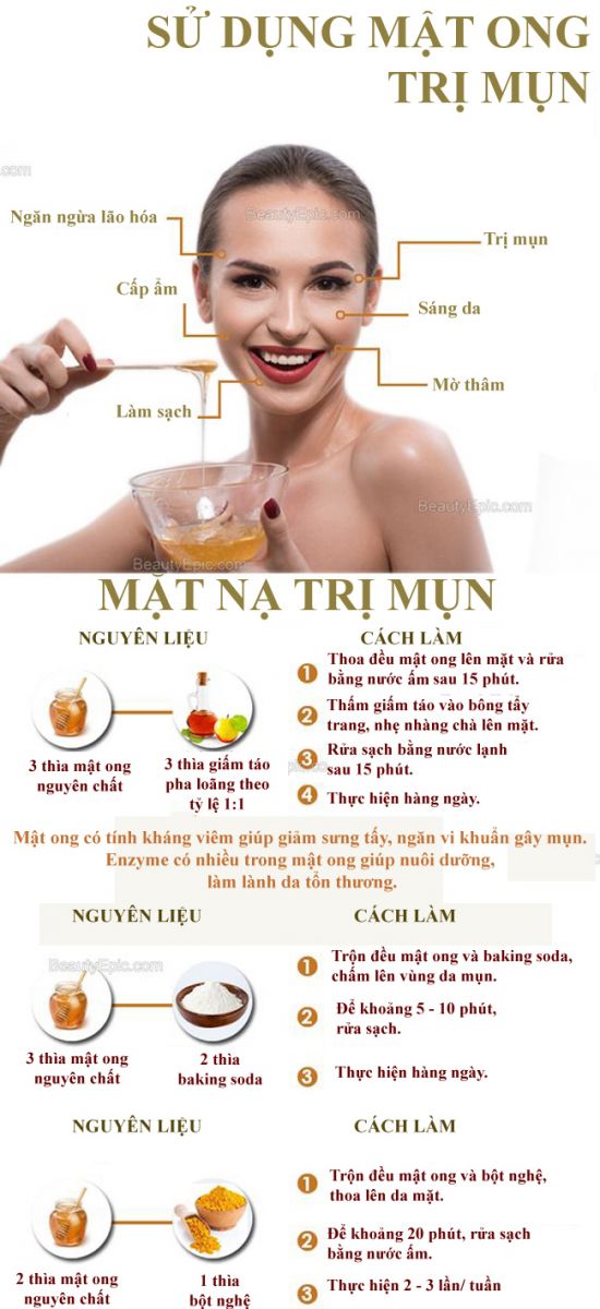 Chỉ bằng ba công thức hữu hiệu này kết hợp với thành phần chính là mật ong, bạn sẽ có cách trị mụn hiệu quả.