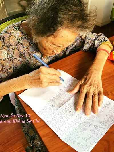 “Hôm nay là sinh nhật chồng bà. Nhớ không nhầm thì ông cũng phải được 105 tuổi mà ông ấy mất cách đây 8 năm rồi, giờ ngồi vẽ đủ 1.000 trái tim đốt xuống cho ông ấy, để ông biết trên này bà vẫn nhớ ông nhiều, ngày nào cũng nhớ, mong sớm ngày được gặp nhau dưới đó, mà khổ nỗi trời phú cho cái sức khỏe thì vẫn phải sống với đời thôi chứ mỗi đêm ngủ chỉ mong sau khi mở mắt là được nhìn thấy ông, có nhắm mắt xuôi tay cũng hạnh phúc…“.