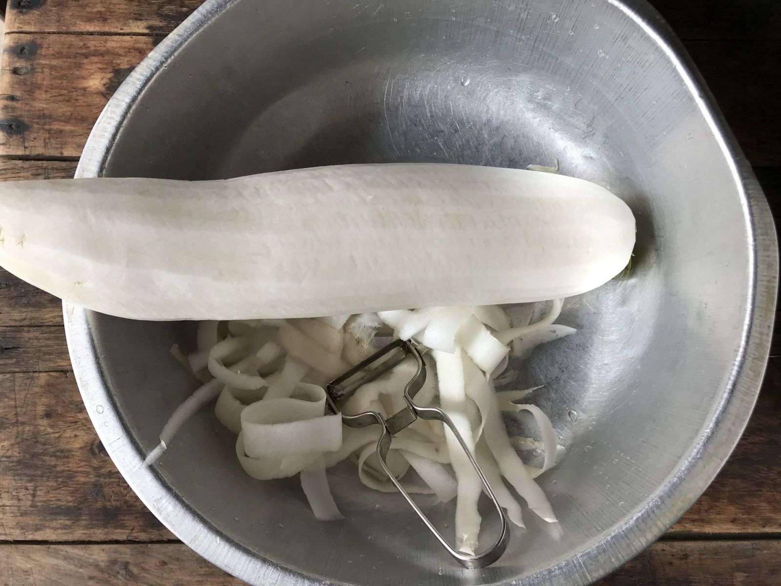 Củ cải trắng gọt bỏ vỏ rồi rửa sạch, để ráo nước.