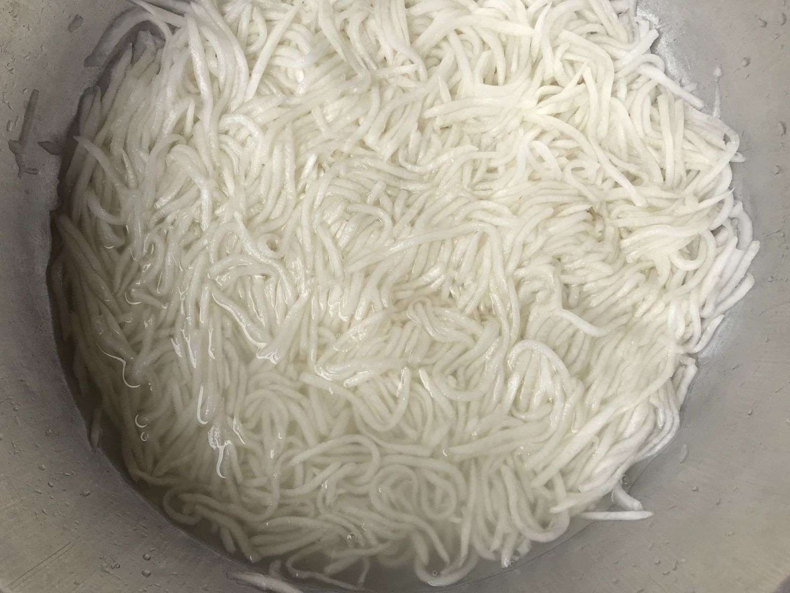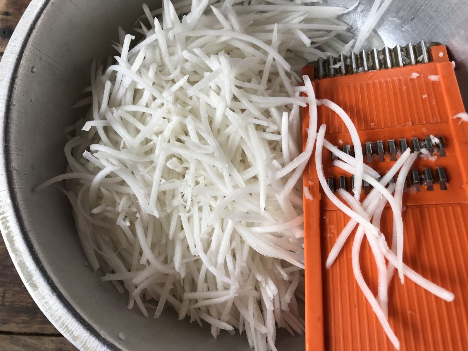 Bào củ cải thành sợi sau đó dùng tay vắt bớt nước có trong củ cải.