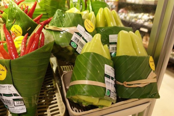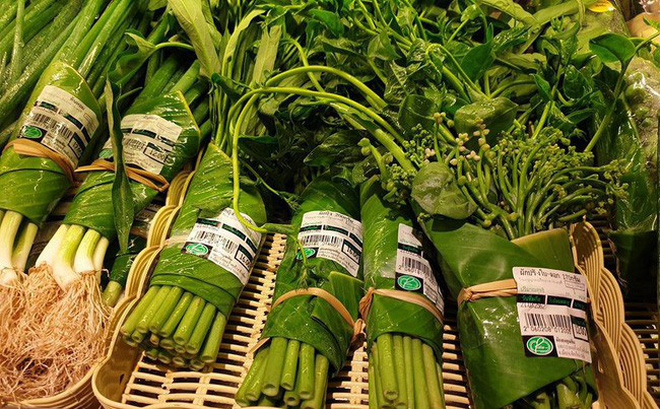 Cửa hàng Thái Lan gây chú ý khi tiên phong dùng lá chuối gói rau củ