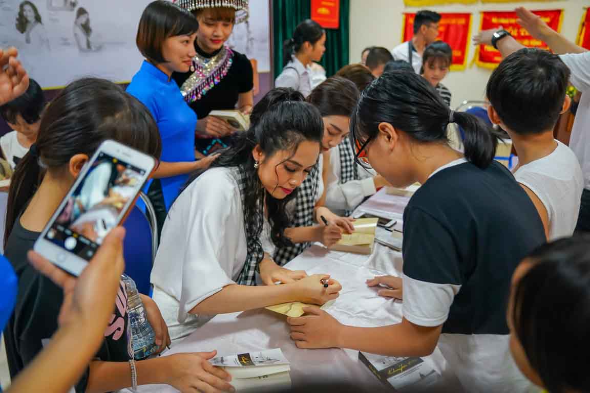 Trong khi đó, Á hậu Mâu Thủy rất hào hứng khi đây là lần đầu tiên cô đến với TP Lào Cai để trao tặng những cuốn sách quý đổi đời. Không riêng gì Mâu Thủy, Hành trình từ Trái tim đã truyền cảm hứng về khởi nghiệp kiến quốc đến cho cô và các bạn trẻ, thế hệ rường cột của nước nhà giúp các bạn xây dựng 1 tinh thần chiến binh, 1 ý chí vĩ đại và một khát vọng lớn.