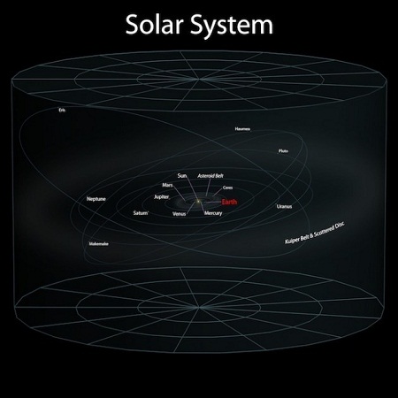 Hệ mặt trời với chấm đỏ bé nhỏ kia là Trái Đất – Ảnh: joshuakennon.com