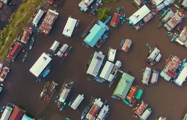 Đây chính là Chong Koh, nơi Hoarith và vợ sống, là một trong hàng trăm ngôi làng nổi ở Tonle Sap, hệ thống sông và hồ ở Campuchia thường được biết đến với tên tiếng Việt là Biển Hồ. Ảnh: New York Times.