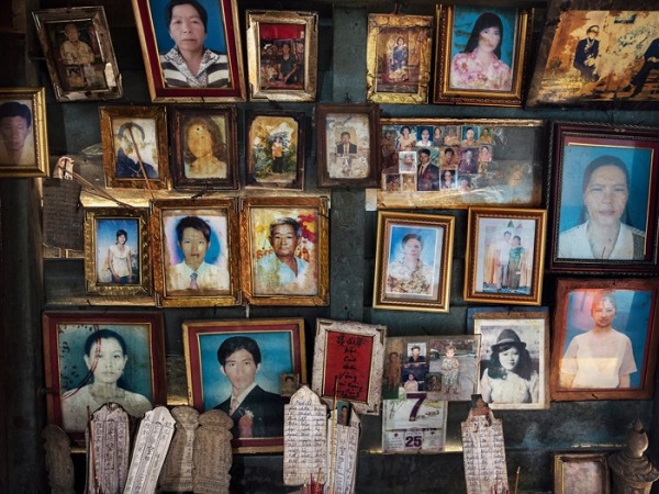 Đây là một ngôi chùa mà người Việt ở Biển Hồ thường lui tới. Trong ảnh, bàn thờ và ảnh chân dung đặt trong ngôi chùa người Việt ở Chhnok Trou. Ảnh: New York Times.