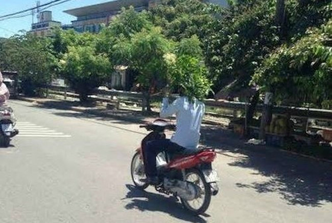 Việc ngụy trang chống nắng bằng cây xanh như bộ đội ngày xưa cũng được nhiều người tính tới và thực hiện ngay khi phải có việc ra đường.
