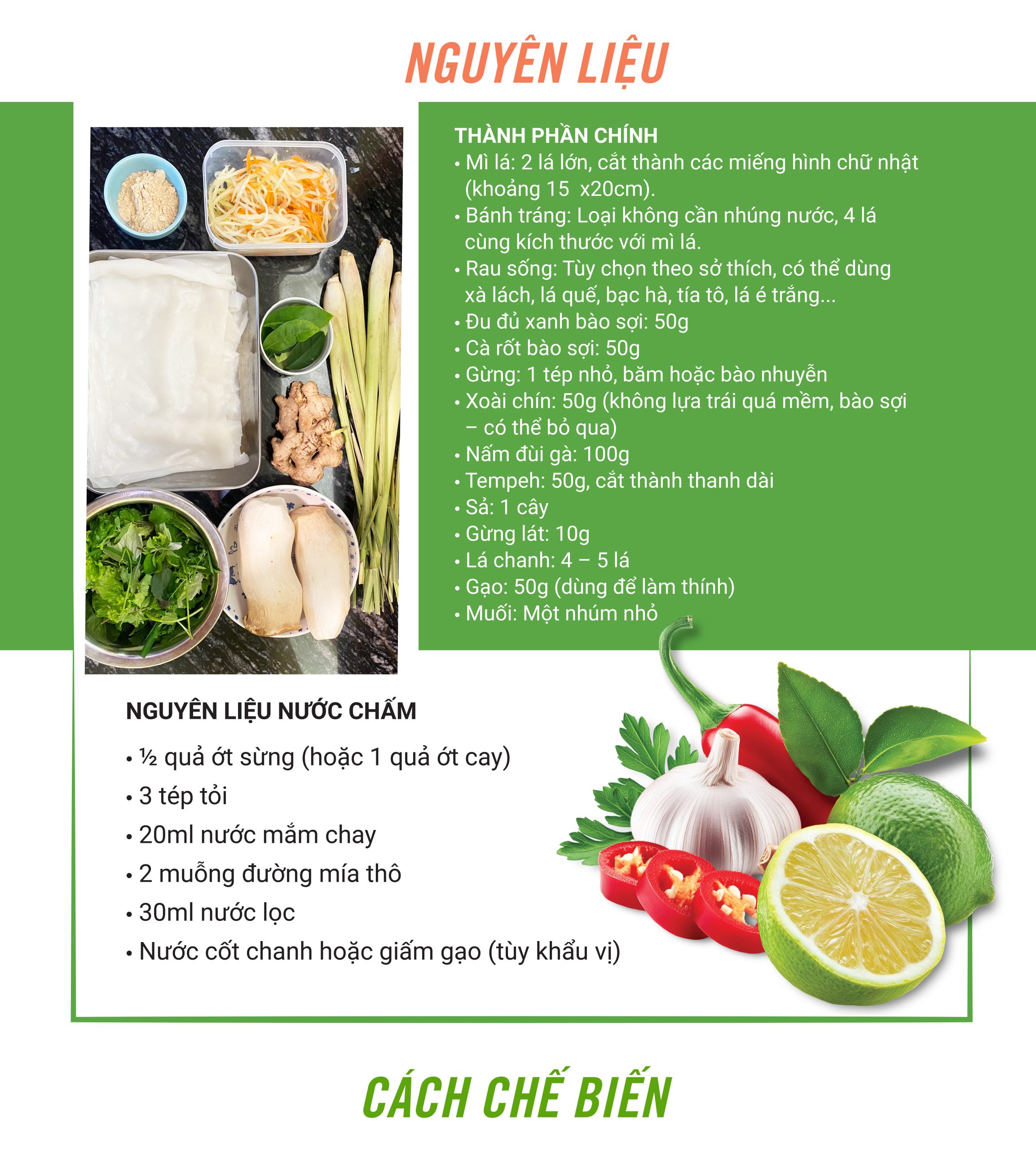 Món cuốn này là lựa chọn lý tưởng cho những ngày hè oi ả, khi bạn muốn tìm một bữa ăn vừa nhẹ nhàng, ít dầu mỡ nhưng vẫn đậm đà hương vị. Sự kết hợp của giữa rau củ tươi mát, tempeh giàu dinh dưỡng và thính rang thơm nồng tạo nên một trải nghiệm ẩm thực thuần chay vừa thanh mát, vừa tinh tế.