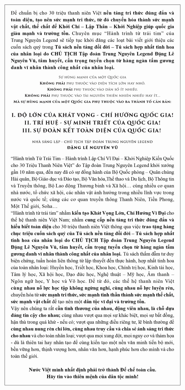 Cuốn sách được Nhà sáng lập – Chủ Tịch Tập đoàn Trung Nguyên Legend Đặng Lê Nguyên Vũ cẩn trọng, tuyển chọn thuộc lĩnh vực Kinh tài học trong Tủ sách Nền tảng đổi đời. Độc giả có thể dễ dàng tìm đọc và chọn mua sách tại các không gian Trung Nguyên Legend, Trung Nguyên E-Coffee trên toàn quốc hoặc tại App Trung Nguyên Legend Café.