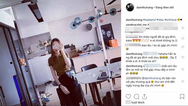 Đáp lại tình cảm của người thân, Đàm Thu Trang hào hứng: “Hẳn là người có gia đình mới chịu, dạ em khỏe anh ơi”. Về phía người em, bà xã Cường Đô La tiếc nuối: “Chắc còn lâu lắm nữa chị em mới có thể gặp nhau đấy em mình à”.