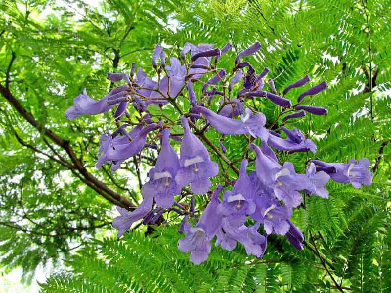 Nhắc về loài hoa phượng tím này, có lẽ nhiều người còn cảm thấy khá xa lạ, bỡ ngỡ. Hoa phượng tím (Jacaranda) có nguồn gốc từ Nam Mỹ, du nhập vào Đà Lạt khoảng đầu thế kỷ 20. Khí hậu Đà Lạt ôn hòa, mát mẻ phù hợp cho loài hoa này sinh trưởng, phát triển. Phượng tím là cây thân gỗ, có thể cao từ 10 – 15 m, đường kính tán lá từ 3 – 7 m. Mỗi lá kép dài khoảng 40 – 50 cm. Hoa hình ống dài từ 4 – 5 cm, có lông tơ, mọc thành từng chùm dày. Hoa thường nở rộ vào khoảng tháng 3 có thể kéo dài đến đầu tháng 4. Tuổi thọ của một bông hoa (thời gian từ khi nụ hoa nở đến khi tàn) kéo dài khoảng 3 đến 5 ngày.