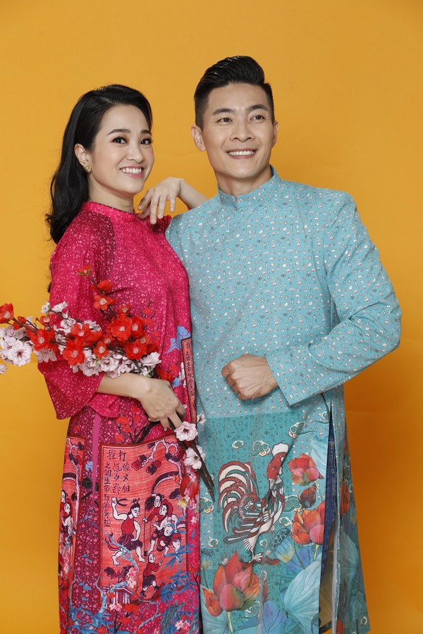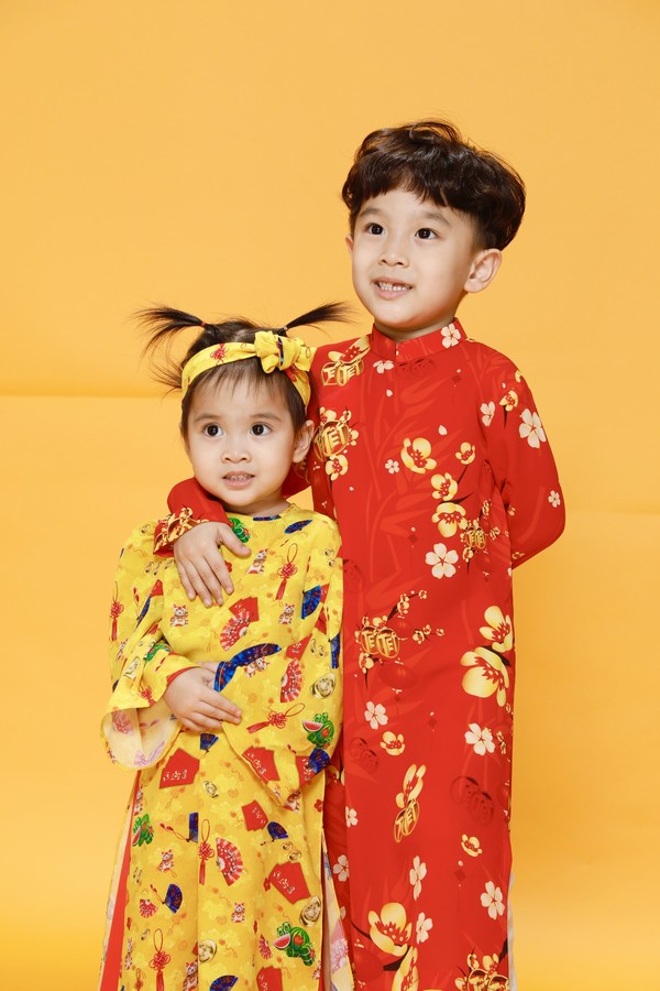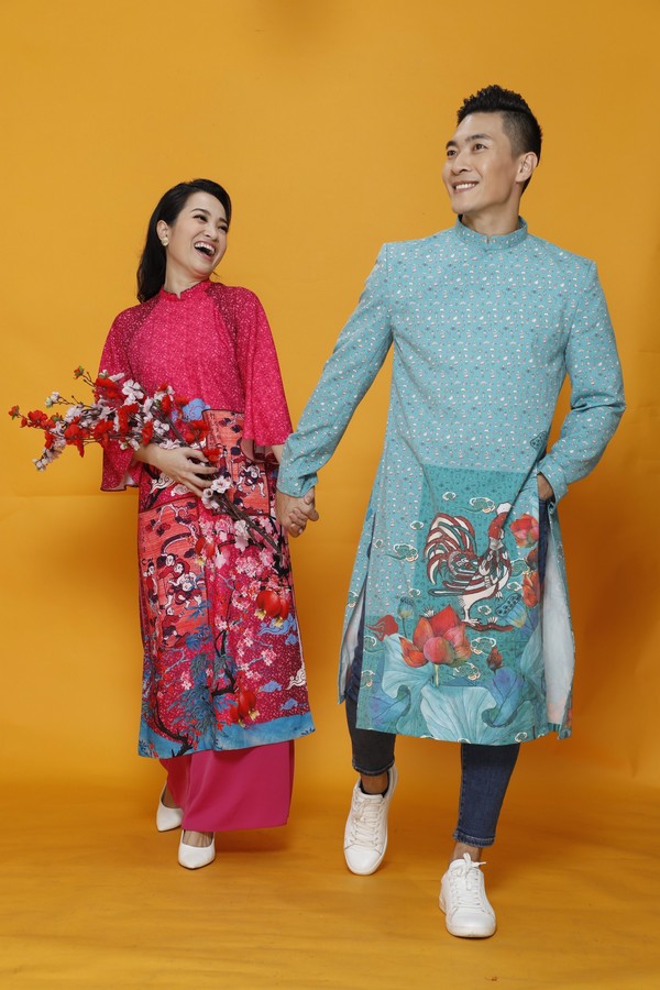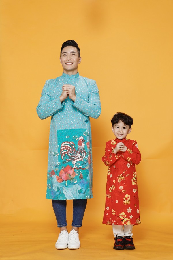 Trong tà áo dài của NTK Việt Hùng, cả gia đình của Quốc Cơ – Hồng Phượng thêm phần rạng ngời, tôn vinh nét văn hóa lâu đời của người Việt Nam.