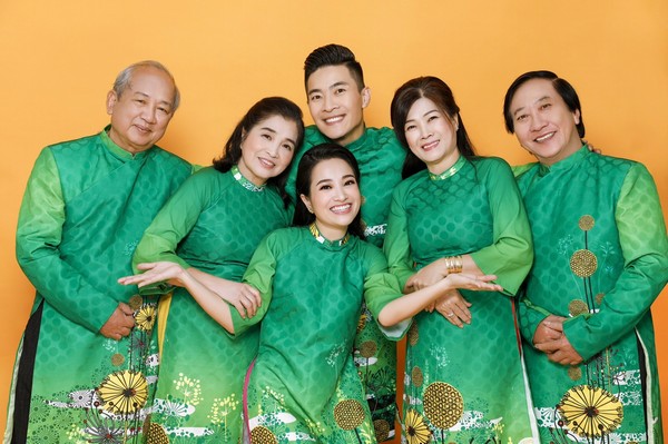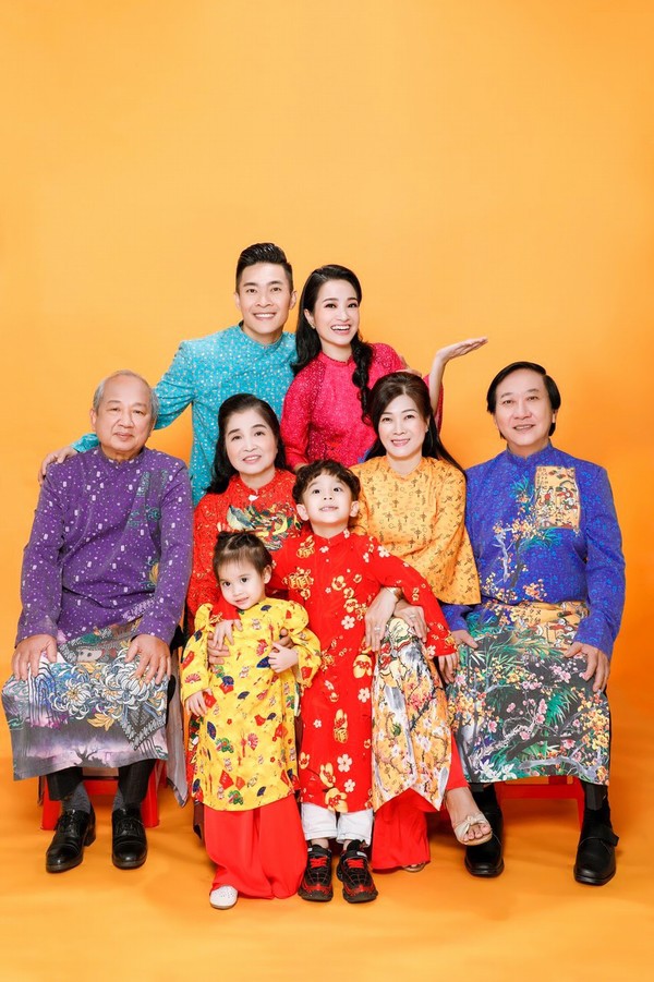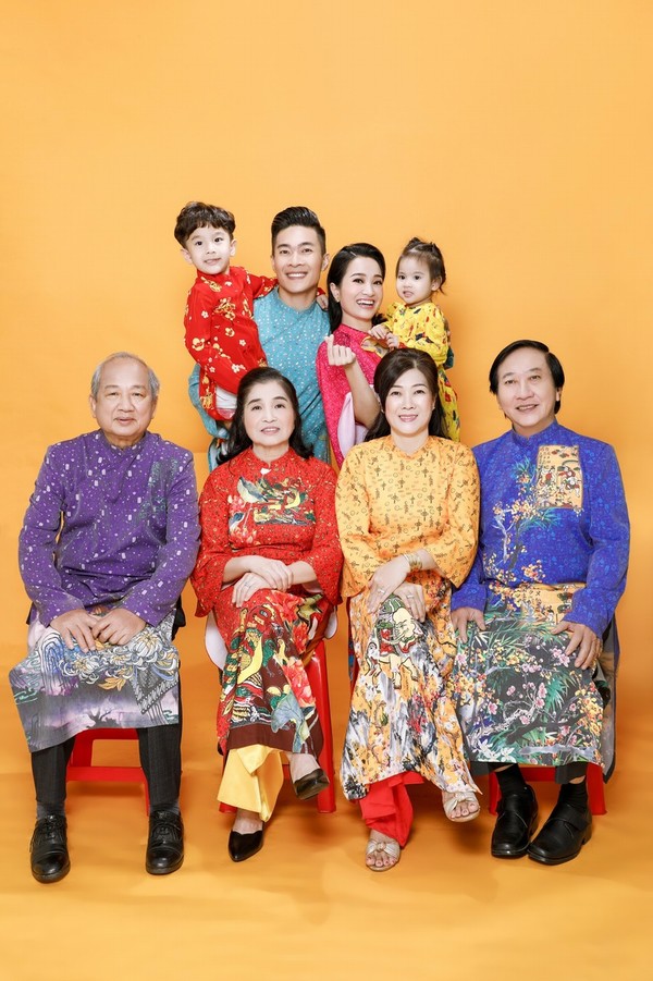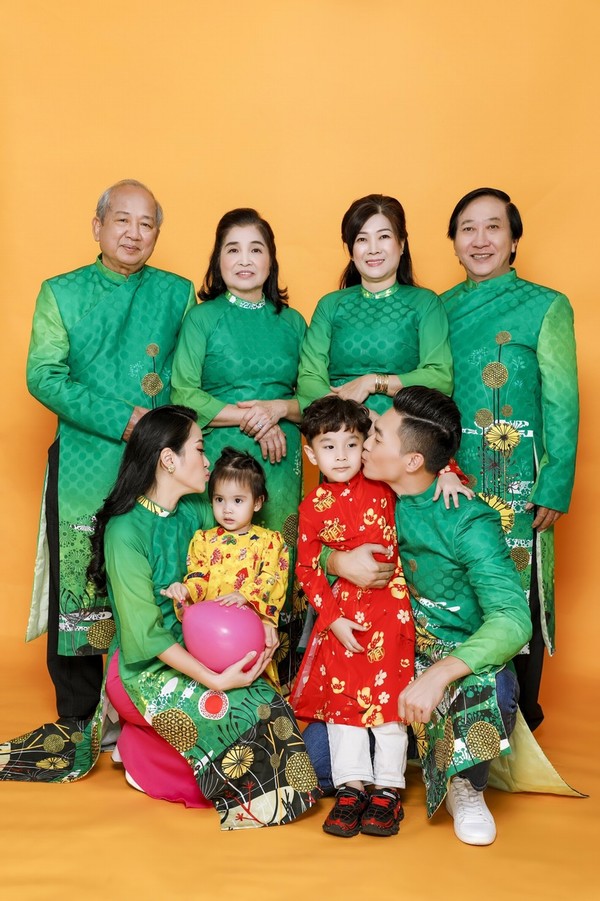 Đại gia đình Quốc Cơ – Hồng Phượng diện áo dài, ghi dấu kỷ niệm ngày xuân